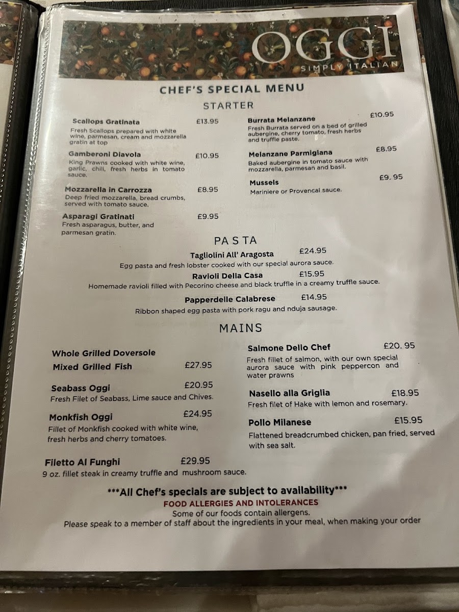 Welcome to OGGI Italian Restaurant, a hidden gem located at 161 London Rd, Leicester. If you're craving authentic Italian cuisine, OGGI is the place to be. Their menu is a symphony of flavors, showcasing a delightful range of fresh pasta and seafood dishes that are crafted with passion.